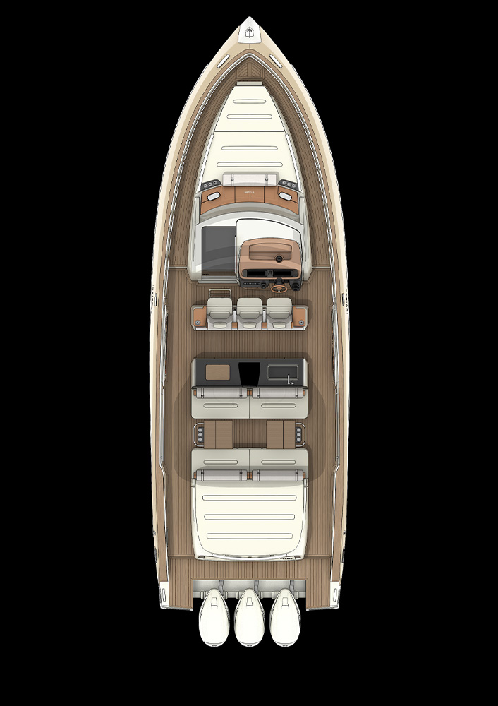 • All of Invictus boats are the result of an integrated design project, in which every detail is part of an idea that makes the boat evolution coherent: from the first paper sketch to launch.